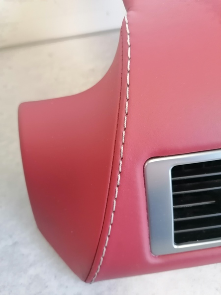 HAND TRIMMED IN CHANCELLOR RED LEATHER WITH SILVER STITCHING